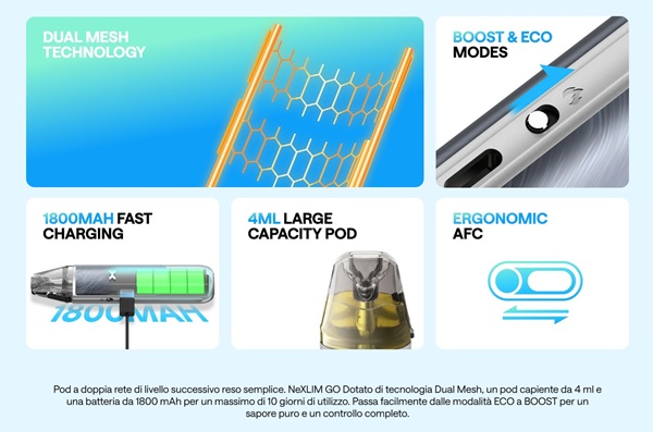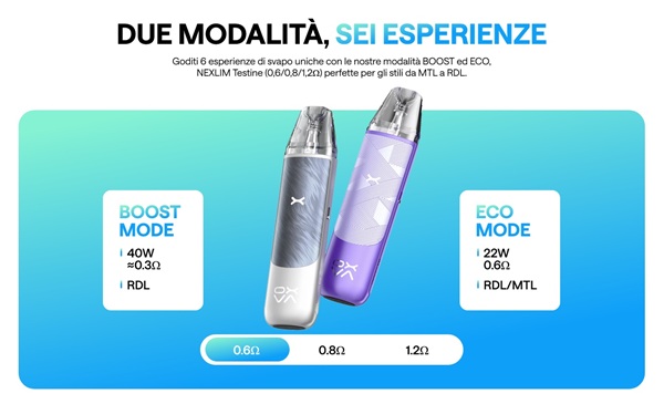 OXVA NEXLIM GO , POD MOD PER SVAPO DI GUANCIA (MTL) E SEMI POLMONARE (RDL)