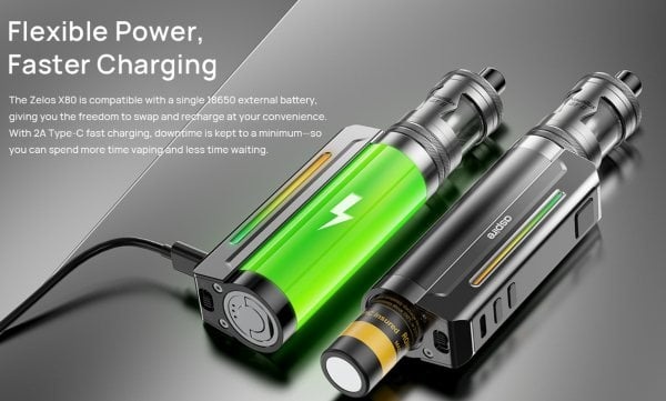 Aspire ZELOS X80 Kit è la nova versione della Zelos X corredata dal nuovo atomizzatore Nautilus GT II, per uno svapo di guancia (MTL) e semi polmonare (RDL)