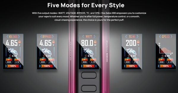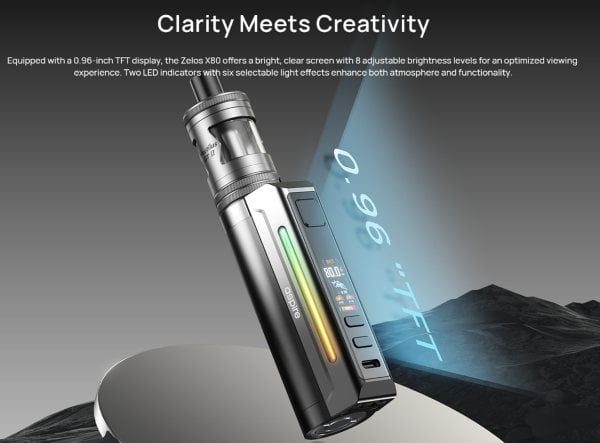 Può erogare fino ad un massimo di 80W ed ha un display TFT a colori da 0,96 pollici.
