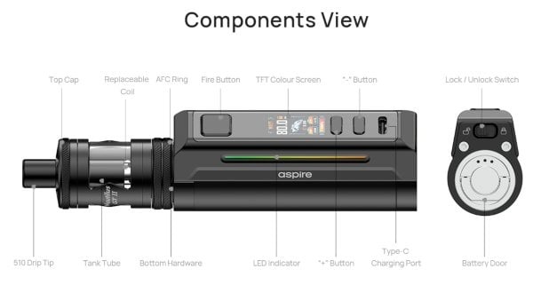 - (TC) Temperatura Controllata: modalità di svapo in cui è possibile impostare la temperatura di svapo, il circuito modula la potenza in modo che la coil mantenga una temperatura preimpostata.