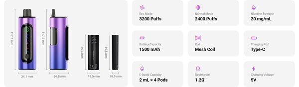 - ECO: Tiro morbido e delicato, offre fino a 3200 Puff