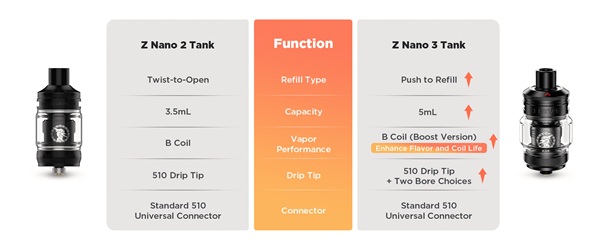 L’atomizzatore a testina Geekvape Z Nano 3 Tank evoluzione dello Z Nano 2, con maggiore capacità del serbatoio ed un sistema di refill superiore facilitato