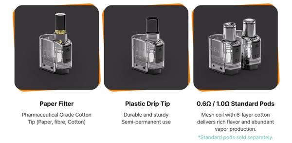 Cartuccia pod con serbatoio da 3,5ml e riempimento liquido laterale con coil a mesh integrata (0,6Ω - 1,0Ω)