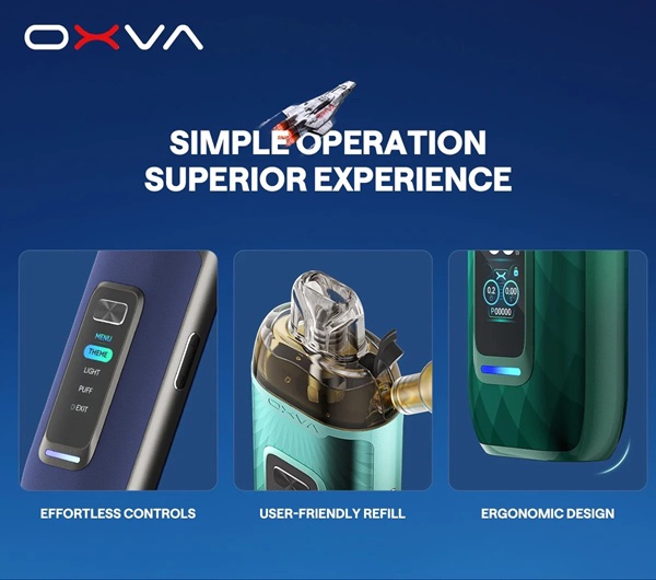 OXVA VPRIME KIT, POD MOD PER SVAPO DI GUANCIA (MTL), SEMI POLMONARE (RDL) E POLMONARE (DTL)