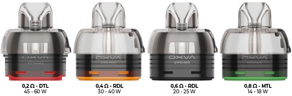 VPrime Pod di ricambio con capacità di 5ml con sistema anti-perdita, in versione (MTL-RDL-DTL) con valori di 0,2-0,4-0,6-0,8 ohm