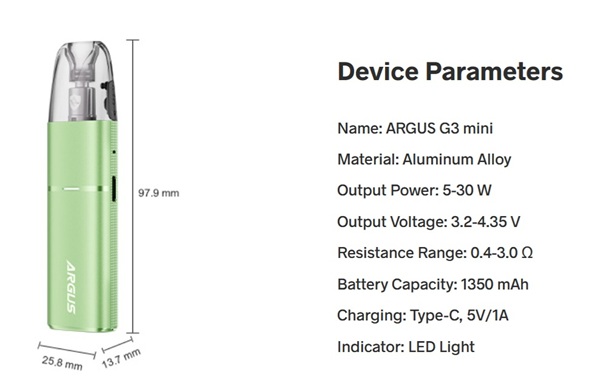 La nuova Argus G3 Mini Pod Mod costruita in lega di alluminio e PCTG con un peso contenuto di soli 40,85 grammi ci permette un utilizzo comodo e pratico