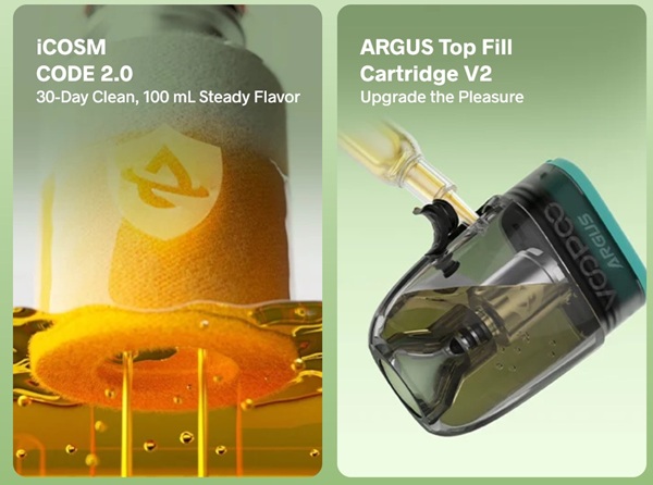 Carucce Argus Top Fill V2 con tecnologia ICOSMCODE promettono una durata fino a 100ml di liquido