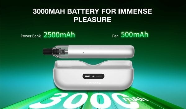 La Vape Pen ha una capacità di 500mAh con la possibilità di ricaricarla attaccandola al powerbank oppure in modo indipendente tramite porta USB-C 0,5A