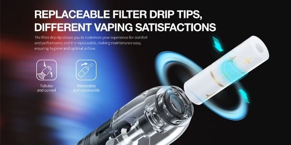In sostituzione del drip tip in plastica è possibile utilizzare i filtri usa e getta in cotone (3pz inclusi nella confezione)